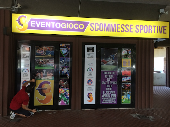 - Vetrofania stampata a colori su vinile, sabbiato e oneway (il materiale permette di vedere dall’interno verso l’esterno e non viceversa).