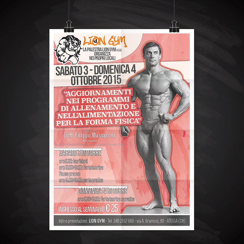 Cliente: Lion Gym | Grafica Creazione locandina per corso d'aggiornamento fitness < Indietro Avanti >